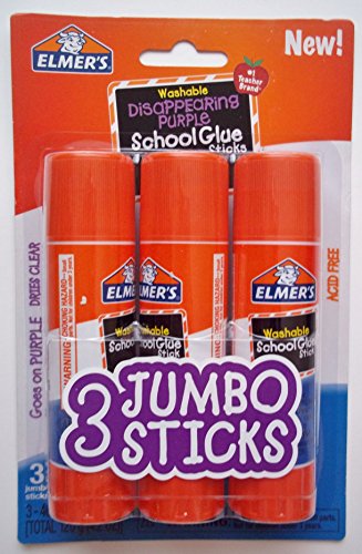 Read main features below to know more about Elmer's Jumbo Glue Stick (3 Pack) 1.4 oz (40g) each - Washable Disappearing Purple.You can compare with another product for Glue
